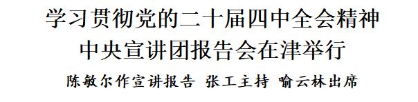 按照黨中央統(tǒng)一部署,學習貫徹黨的二十屆四中全會精神中央宣講團報告會10月31日在津舉行。中央宣講團成員、市委書記陳敏爾作宣講報告。