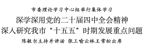 11月10日,十二屆市委理論學(xué)習(xí)中心組舉行集體學(xué)習(xí),認(rèn)真學(xué)習(xí)貫徹黨的二十屆四中全會(huì)精神,結(jié)合深入貫徹落實(shí)習(xí)近平總書(shū)記視察天津重要講話精神,聯(lián)系思想和工作實(shí)際,交流學(xué)習(xí)體會(huì),研究我市“十五五”時(shí)期發(fā)展重點(diǎn)問(wèn)題,進(jìn)一步明確工作思路舉措,推動(dòng)全會(huì)部署落地落實(shí)。